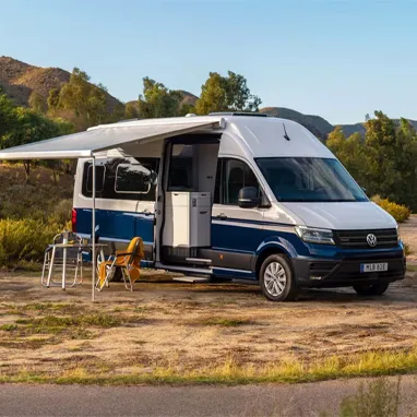 A Nova California está disponível nas versões de 5 e 6 lugares e é Classe 1 nas portagens com Via Verde. Como a primeira auto-caravana híbrida do mercado, oferece carregamento rápido e uma autonomia elétrica de até